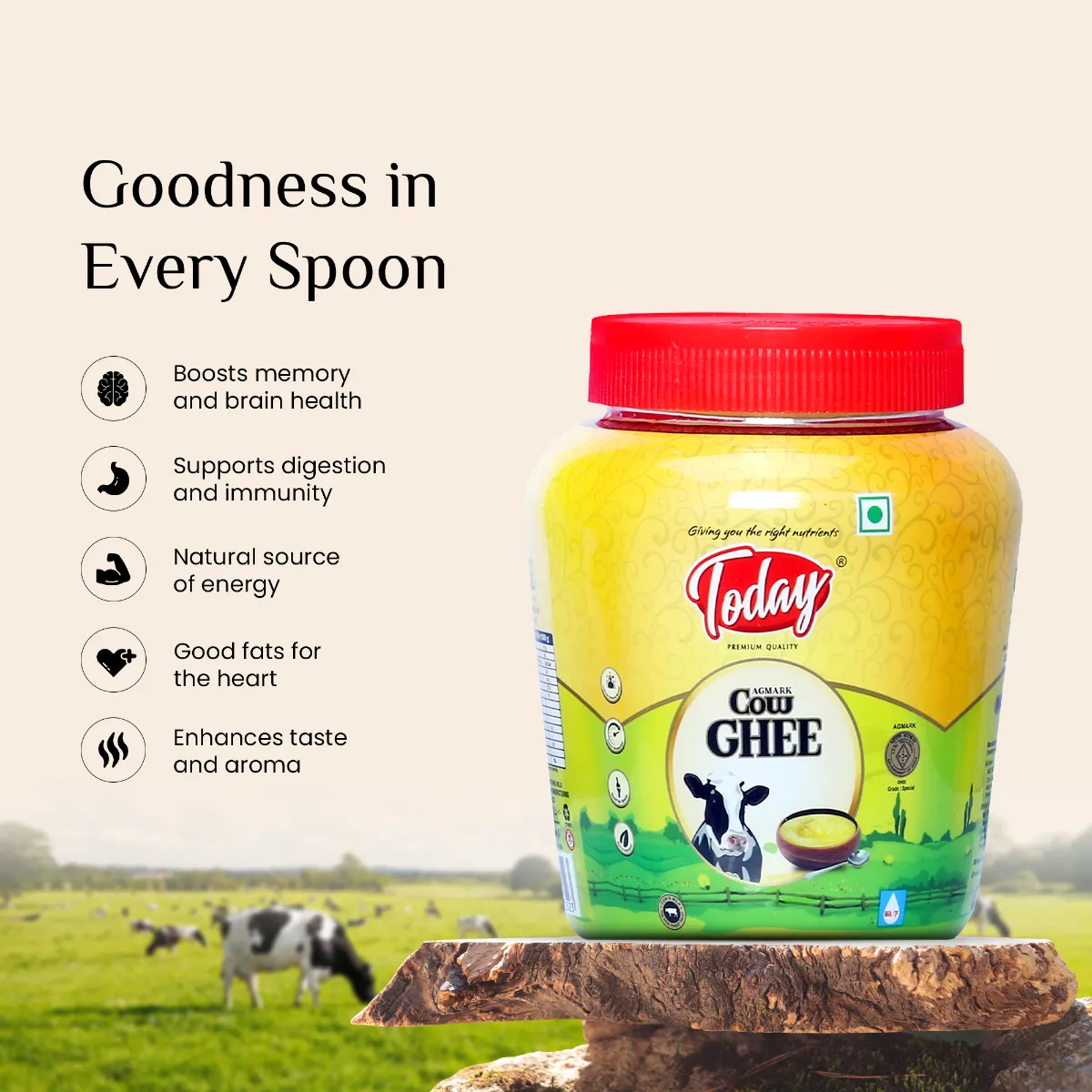 - Made from the milk of cherished desi cows, reflecting tradition and care in every jar.